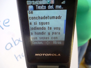 Esta vez mostró un celular con mensajes de texto que señala frases como: “Si sigues jodiendo, te voy a hundir y vas a saber quién soy”.