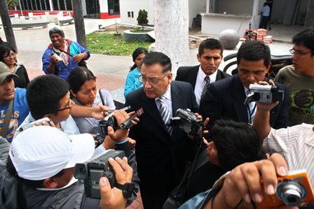 En más de una ocasión Ezequiel Nolasco intentó acercarse al Presidente de la Corte Superior de Justicia del Santa y al representante de la Oficina de Control de la Magistratura para entregarle el audio y video que presentó días atrás a la prensa.