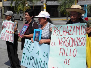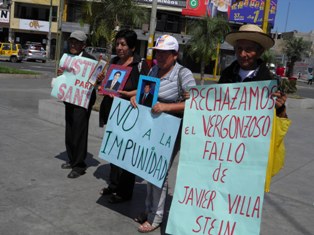 Chimbotenlinea.com (Por: Lindberg Cruzado).- Con carteles en mano los familiares de los nueve campesinos del valle Santa ejecutados por los miembros del Grupo Colina el 2 de mayo de 1992 rechazaron esta mañana el fallo Villa Stein.