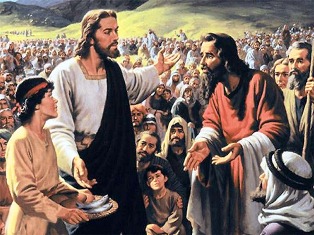 Son los pobres y débiles los más dispuestos a compartir. Ordena que la gente se siente en la hierba, tomó el pan, da gracias a Dios y lo repartió entre la gente (v. 10-11). Hermosa lección para nosotros, cuando nos reunimos para celebrar la eucaristía, hacer nuestro lo que Jesús hizo. Él es el Pan de vida, que se nos da en alimento, que sacia nuestra hambre de pan, creando condiciones de vida más dignas, que nace precisamente de ese espíritu nuevo que infunde en sus discípulos, que la acción de gracias va unida al compartir, en el gesto solidario que brota del reconocimiento que