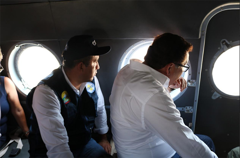 Después, el ministro de Defensa hizo un sobrevuelo por las desembocaduras de los ríos Casma, Huarmey y Santa, a fin de evaluar las zonas vulnerables y de riesgo ante las lluvias intensas.