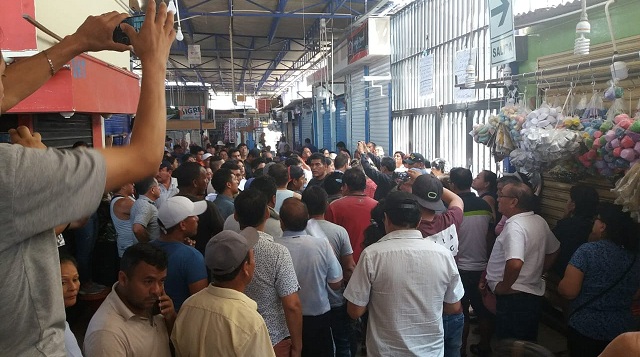 Jéssica Juárez acompañada de su comité directivo y un grupo de comerciantes se dirigieron a las oficinas administrativas de dicho centro de abastos y se dio con la desagradable sorpresa que los exdirigentes cerraron las rejas para evitar que los nuevos dirigentes asuman funciones.