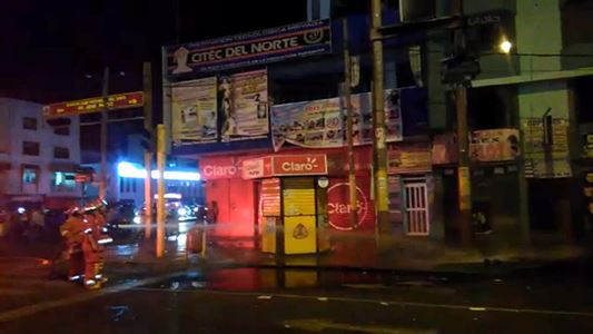 Chimbote en Línea.- Personal del servicio de Serenazgo, bomberos y de la empresa Hidrandina intervinieron para controlar un amago de incendio que se produjo anoche, frente al local del partido aprista, en la avenida principal de la ciudad.