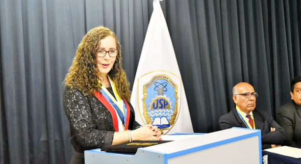 Chimbote en Línea.-La presidenta de la Comisión Lava Jato del Congreso de la República, Rosa María Bartra, difundió en sus redes sociales fotos con escenas donde recibe un reconocimiento a cargo del rector de la Universidad San Pedro (USP), José María Huamán Ruiz, sobre quien pesa una sentencia por el delito de fraude y que a pesar de no haber sido reconocido como autoridad por la Sunedu.