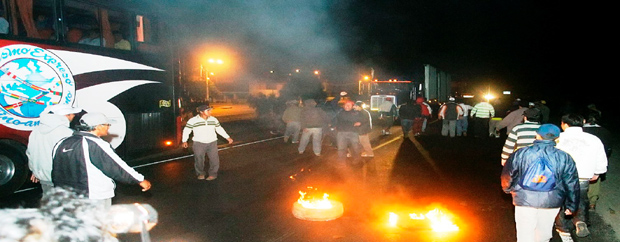 Con quema de llantas y piedras bloquearon la vía desde las 00 horas hasta las 3 de la mañana, durante ese tiempo el tránsito estuvo interrumpido, provocando que más de tres centenares de vehículos de carga pesada e interprovinciales quedaran varados en esta zona.