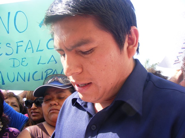 Con más de 70 militantes, el funcionario llegó hasta el palacio municipal con la intención de interrumpir una reunión donde presuntamente se iba a licitar una obra de alcantarillado en la zona antes mencionada.
