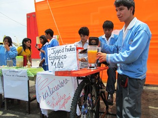 La universidad Uladech Católica auspició a la delegación de estudiantes del colegio “República Argentina” que presentó un novedoso y creativo proyecto denominado “Llicuabici”, que básicamente consistió una licuadora que entra en funcionamiento con la energía generada al pedalear la base de una bicicleta y logra moler la fruta en su vaso tal como lo demostraron con papaya, obteniendo un sabroso y natural jugo que fue compartido con los presentes.