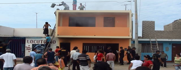 Chimbotenlinea.com (Por: Cintia Cabrera).Salvaron de milagro.Los hermanitos Aldair (2) y Paul David Alejos Villacorta (7) dormían en el segundo piso de un inmueble que ardía en llamas en la primera planta. El humo invadió el lugar en contados minutos y los pequeños quedaron atrapados en el fuego, pero afortunadamente su padre de manera heroica logró sacarlos con vida.