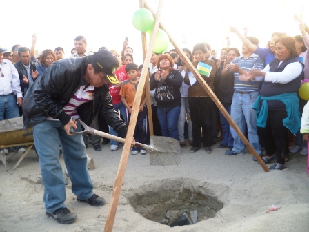 Chimbotenlinea.com (Redacción Central).-Luego de 21 años, desde que los arenales de “San Luis” se poblaron, finalmente este sector de Nuevo Chimbote tendrá una plaza cívica. El alcalde distrital, Juan Francisco Gasco Barreto colocó hoy la primera piedra de esta obra que demandará una inversión total de 3 millones 600 mil nuevos soles.