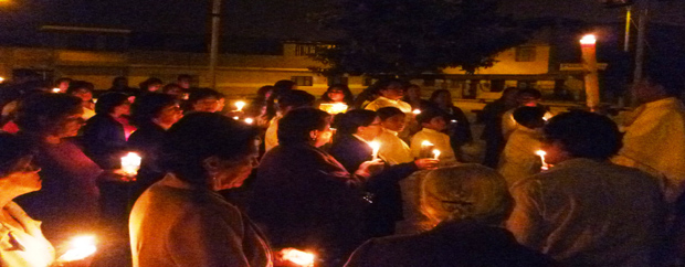 Chimbotenlinea.com (Redacción central) En las parroquias de la Diócesis de Chimbote, esta madrugada, se celebraron ceremonias para conmemorar la resurrección de Jesús; siguiendo la fe católica. Muchos fieles acompañaron el acto de bendición del fuego, encendido del cirio pascual, la bendición del agua y la eucaristía dominical desde las 4 a.m.