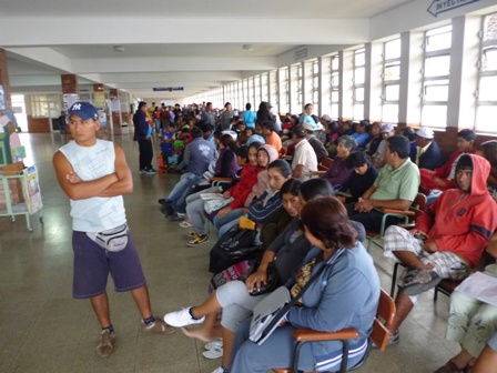 Hospital La Caleta. 5 a.m. Desde la entrada principal, decenas de personas en fila india forman una culebra gigantesca que se extiende larga y sinuosa pegada a la pared. Llega a la esquina, la dobla y sigue avanzando hasta alcanzar la puerta de emergencia del nosocomio. Son los enfermos. O sus parientes. Y han madrugado para obtener un ticket de atención. Todos van a pagar, pero aún teniendo dinero, no todos tendrán la posibilidad de ser atendidos. Así es, así vivimos y así sufrimos. Pero ¿por qué?