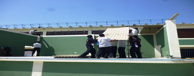 Chimbotenlinea.com (Por Cintia Cabrera).- Han pasado casi dos meses desde que el Consorcio César Vallejo “concluyó” trabajos de construcción en el colegio César Vallejo; pero no entregó la obra formalmente, es decir no fue recibida por el director del colegio y quedaron varias cosas por concluir. Una de ellas es el techo del estrado, que hoy los alumnos y algunos docentes suspendieron algunas horas de clase para instalar calaminas y dejarlo listo para la actuación del “Día de la Madre”.