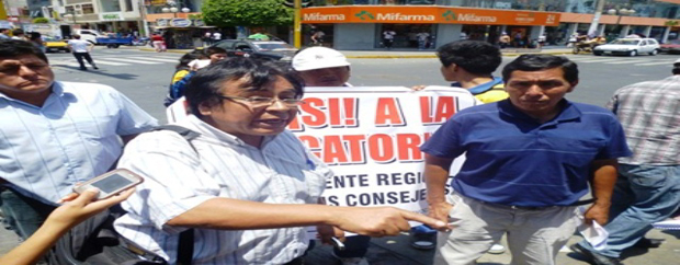 Chimbotenlinea.com (Textos y fotos Gonzalo Horna).- El ataque de esta mañana por un grupo de desadaptados, así como la intención del personal de serenazgo y la Policía Municipal de desalojar a las personas que se encontraban recolectando firmas para la revocatoria de las autoridades regionales y provinciales, despertó la indignación del integrante del directorio del Comité Pro Revocatoria, Ezequiel Nolasco Campos.
