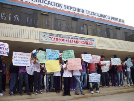 Chimbotenlinea.com (Por Cintia Cabrera).- Cumplieron su promesa. El alumnado y docentes del Instituto Superior Tecnológico “Carlos Salazar Romero” acataron una paralización de 24 horas en exigencia a sus reclamos, una de ellas la destitución del director Beder Rosales Quezada y el subdirector Paulino Carhuanina Tarazona.