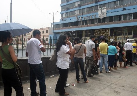 Chimbote en Línea (Revocatoria).- Extensas colas ser observaron esta mañana en las inmediaciones del Registro Nacional de Identificación y Estado Civil (Reniec) del Cercado de la capital, a un día de la consulta popular de revocatoria de autoridades de la Municipalidad de Lima.