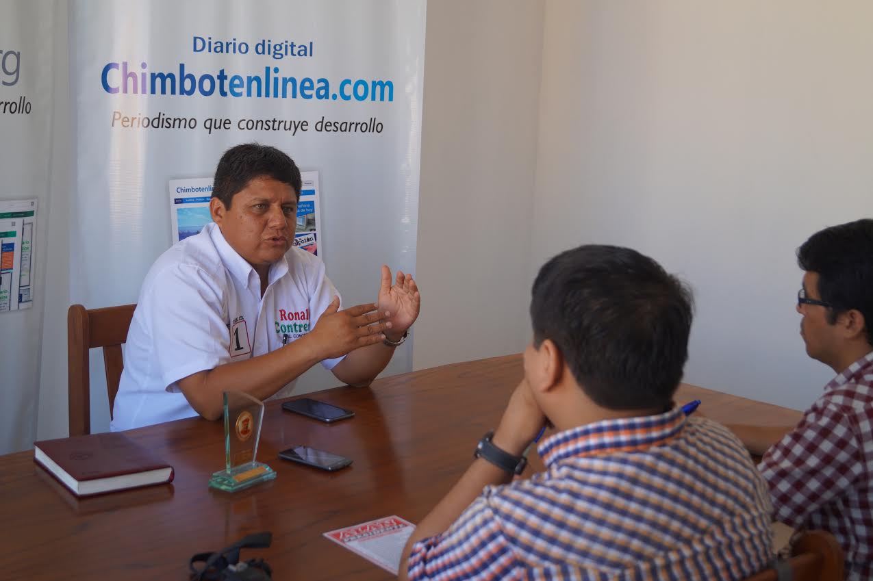 Chimbote en Línea.- El candidato al Congreso de la República por la Alianza Popular, Ronald Contreras, se hizo presente como invitado a las “mesas electorales” que organiza Chimbote en Línea y Correo Chimbote y se pronunció sobre sus propuestas de trabajo, en especial el mentado Proyecto Especial Chinecas.