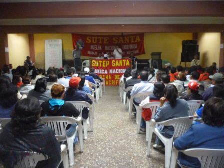 Chimbotenlinea.com (Por: Milton Palpa).- Pese a no ser escuchados en sus pedidos 40 docentes afiliados al Sindicato Único de Trabajadores de la Educación (Sute) Santa, viajarán a Lima en una marcha de sacrificio para apoyar a los maestros de todo el país, quienes llevan acatando una huelga nacional indefinida desde hace más de 20 días, exigiendo la derogación del proyecto Ley de Reforma Magisterial y otros pedidos.
