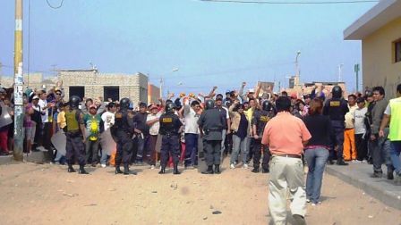 en la construcción del parque central del pueblo joven 3 de Octubre, en Nuevo Chimbote.Esto desató la furia de la parte contraria de obreros quienes los persiguieron hasta dispersarlos. Se registró una lluvia de piedras entre ambos bandos que ocasionaron daños a viviendas, una mototaxi. Los disparos no se hicieron esperar entre la gresca.