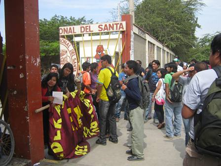 Chimbotenlinea.com (Redacción Central).- Alumnos de la Universidad Nacional del Santa (UNS) tomaron esta mañana su institución exigiendo se cumpla con un pliego de reclamos. Los integrantes de la Federación de Estudiantes y del Consejo Universitario, iniciaron una protesta desde las 6.30 a.m. en la puerta principal de su la UNS, desde donde reclamaron la inmediata habilitación del servicio de internet, por el cual dicen haber pagado 8 soles en su matrícula pero que hasta ahora no lo reciben, informó RSD.