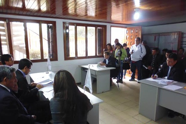 El presidente del JEE del Santa, Willians Vizcarra Tinedo manifestó que estas sesiones se desarrollan públicamente para transparentar el proceso normativo electoral y además para que la ciudadanía conozca los alegatos de los abogados y ciudadanos que se presentan en las audiencias. (Por Victoria Fuentes)