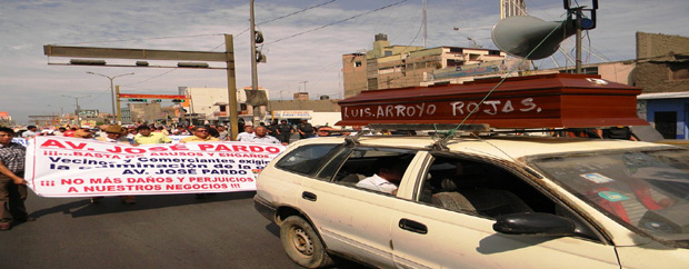 Chimbotenlinea.com (Por: Lindberg Cruzado).-La avenida Gálvez, hasta el Óvalo San Pedro, estuvo congestionada por varias horas debido a la jornada de protesta que acató esta mañana un sector de transportistas que exige la destitución de la gerente de servicios públicos de la Municipalidad Provincial del Santa, Lourdes Sandoval Rojas, por otorgar presuntamente permiso de operaciones a empresas “fantasmas”.