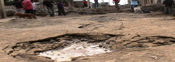 Chimbotenlinea.com (Por: Milton Palpa).- Debido a los trabajos de cambio de colectores ejecutados por el gobierno regional, más de 40 viviendas de la calle Santa Lucía en el pueblo joven 2 de Mayo se encuentran en peligro de hundimiento por la tierra mal compactada en el lugar. Los moradores exigen a las autoridades solucionar el problema antes de que la situación empeore.