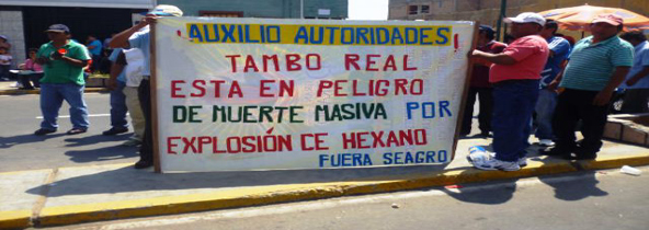Chimbotenlinea.com (Por: Milton Palpa).- Con carteles en mano y arengas de rechazo, más de un centenar de personas del poblado de Tamborreal protestaron frente al edificio de Juzgados Civiles, en contra del funcionamiento de la empresa Seagro SAC, que procesa marigold en al zona, exigiendo el cierre de dicha empresa por contaminar el medio ambiente.