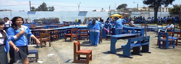 Chimbotenlinea.com (Por. Cintia Cabrera).- El problema de sobrevivencia se agudiza cada vez más en la Institución Educativa (I.E.) “República Argentina” debido a que sus 2 mil escolares sufren los estragos del cambiante clima en el distrito de Nuevo Chimbote. A esta cantidad se suman, 800 alumnos provenientes de la I.E. “Augusto Salazar Bondy”, quienes tendrán que recibir sus clases en una situación de hacinamiento.