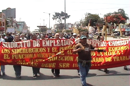 Chimbotenlínea.com (Por: Gonzalo Horna) VIDEO.- Un grupo de por lo menos 300 trabajadores siderúrgicos desfilaron esta mañana por las principales calles de la ciudad. El motivo, mejores condiciones en la alimentación que reciben por parte del proveedor que abastece de alimentos a la empresa.