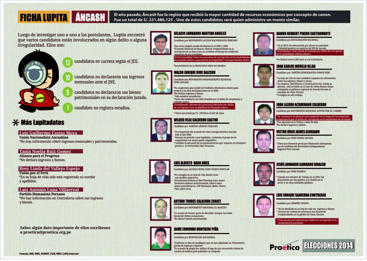 Chimbote en Línea (Elecciones 2014).- Cinco de los 19 candidatos a la presidencia del Gobierno Regional de Áncash son investigados por el delito de corrupción, según la Comisión de Alto Nivel Anticorrupción (CAN).