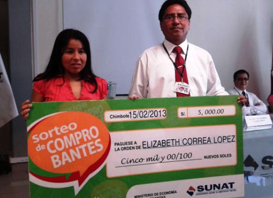 Cabe indicar que por año la Sunat, realiza tres sorteos premiando a los ciudadanos que depositan sus comprobantes de pago con un monto mínimo de treinta nuevos soles con su dirección, número telefónico y DNI, esperando que para el 2013 se dé la misma iniciativa. (Por: Milton Palpa)