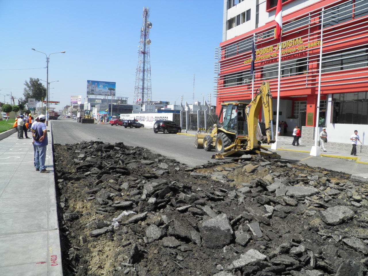 El representante legal y residente de la obra, Enrique Miranda Caldas dijo que en 3 días el Consorcio Cívico 1 ejecutor de los trabajos, levantará 12 mil metros cuadrados de carpeta asfáltica y 800 metros cuadrados para las veredas. Luego de ello procederán con la reconstrucción total.