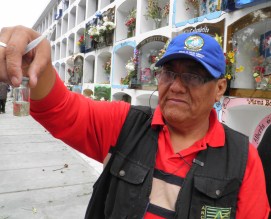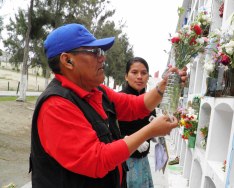 Mañana viernes realizarán la fumigación en el Divino Maestro, donde se ha prohibido el uso de agua en los floreros. Desde hoy los niños y mujeres que trabajan limpiando nichos empezaron a vender botellas con arena húmeda, el precio lo dejan a la voluntad de cada persona.