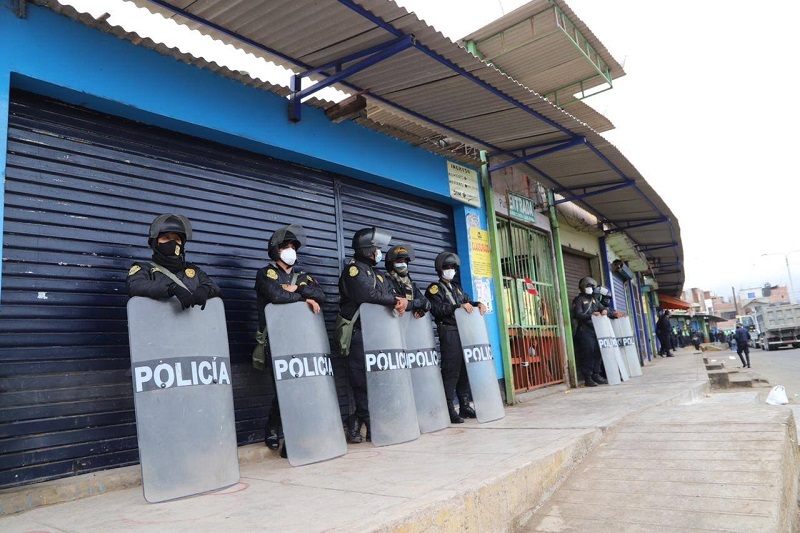 Al promediar las 3:30 de la madrugada de hoy , efectivos de la Policía Nacional y agentes de Seguridad Ciudadana acordonaron las calles colindantes para proceder con el cierre de este centro de abastos, que por años operó en medio de la informalidad, con pasadizos invadidos; además representaba un foco infeccioso para la propagación del coronavirus (Covid 19).