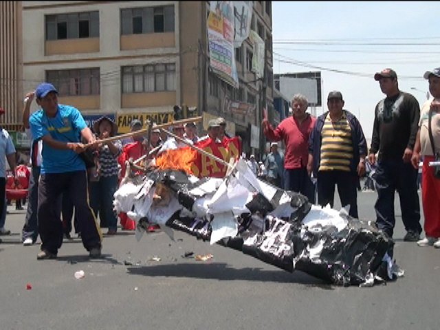 La protesta de los docentes huelguistas del Sute-Santa se agudiza. Esta vez los profesores quemaron un ataúd con las siglas del Comité Ejecutivo Nacional (CEN) en la intersección de las avenidas Gálvez y Pardo del centro de la ciudad de Chimbote.