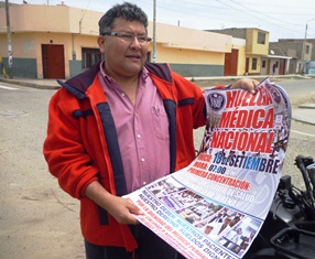 Hoy se inició el pegado de los afiches que anuncian la huelga indefinida de los médicos quienes reclaman el nombramiento al cien por ciento de los médicos contratados y el incremento de las remuneraciones estancadas hace 20 años.
