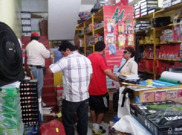Chimbote en Línea (Locales).- A pocos días de iniciarse el año escolar 2013, el Departamento de Salud y Gestión Ambiental de la MPS, a través de la campaña “Escolar Saludable”, inspeccionó 4 locales del centro de Chimbote, dedicados a la venta de útiles escolares, a fin de verificar que los productos ofrecidos al público cuenten con su registro sanitario y autorización que otorga la Digesa. (Foto: Milton Palpa)