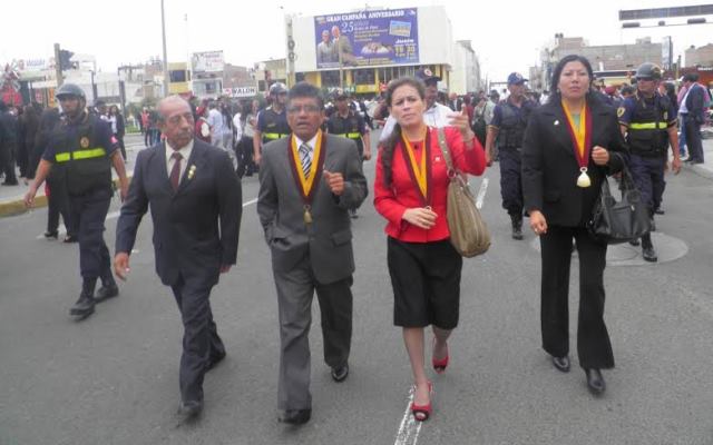 Chimbote en Línea.- Con ausencia de autoridades se dio inicio a las actividades protocolares en honor al santo patrón San Pedrito. A las 9 y media de la mañana se realizó el desfile de banderas. En esta actividad se hicieron presentes los regidores de oposición, Humberto Ortiz Soto y Paola Huamán Vela, mientras que del lado del oficialismo la concejal, Katherine Moreno Alzamora, asimismo la rectora de la Universidad Nacional del Santa, América Odar y el representante de la Gobernación provincial.