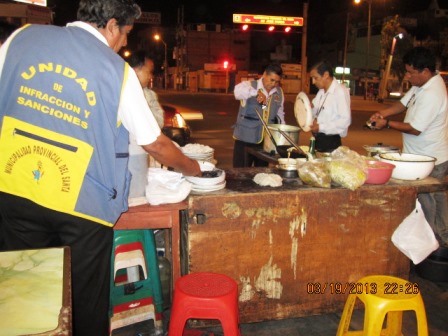 Durante la intervención de procedió a decomisar los platos despostillados, además se ha notificado por falta de carnet y capacitación sanitaria por ello se les dio un plazo máximo de 48 horas, de lo contrario se incautarían todos sus enseres, incluidos sus triciclos y mesas.