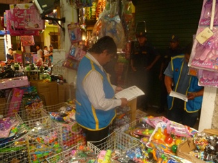 Chimbote en Línea (Locales).-La Segunda Fiscalía  de Prevención del Delito, Discamec, Policía Nacional del Perú y la Gerencia de Servicios Públicos de la Municipalidad Provincial del Santa, a través de la División de Comercialización, realizaron un operativo incautando más de 60 juguetes de dudosa procedencia.