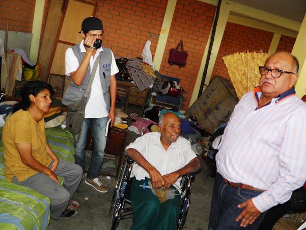 Chimbote en Líneea (Locales).-El alcalde de la provincia del Santa, Luis Arroyo Rojas, y los políticos Valentín Fernández Bazán y Líder Saavedra Paredes se comprometieron en ayudar a la humilde familia de don Juan Prada Pariachi de 81 años que padece de artrosis en la columna, glaucoma en la ojos y una
