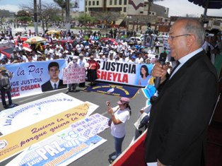 En todo momento, los miles de acompañantes a esta marcha dejaron en claro su posición de total rechazo a la violencia, a la injusticia y a la impunidad y exigieron el pronunciamiento de las principales autoridades locales, como el alcalde provincial, Luis Arroyo Rojas, cuya ausencia fue notoria.