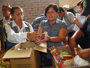 Chimbote en Línea (Locales).-Dos días después de que un adolescente se volara la mano izquierda al estallar una peligrosa “rata blanca” en el asentamiento humano El Satélite, la fiscal de prevención del delito, Magaly Monteza Ravello, y la jefa de la Unidad de Infracciones y Sanciones de la Municipalidad Provincial del Santa, Jazmín Baltazar Pérez, con apoyo de la Policía Municipal, decomisaron gran cantidad de artefactos pirotécnicos que se vendían en el Mercado Progreso.