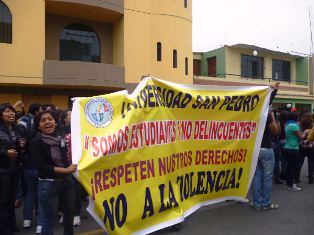 Las protestas de los estudiantes de la Facultad de Medicina Humana de la Universidad San Pedro no cesan. Esta mañana volvieron a concentrarse en el frontis de las Oficinas del Rectorado, ubicadas en la urbanización Laderas del Norte, que estuvieron custodiadas por la policía.