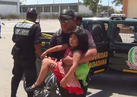 Rápidamente agentes de serenazgo llegaron al lugar para auxiliar a los heridos que venían a bordo de la mototaxi y se trata de la madre de familia Sandra Bravo Sifuentes (39) y sus tres menores hijas Sandra Valdivia Bravo (15), Trisha Valdivia Bravo (11) y Tania Valdivia Bravo de 5 años de edad, quienes de inmediato fueron trasladadas por los agentes al Hospital Regional.