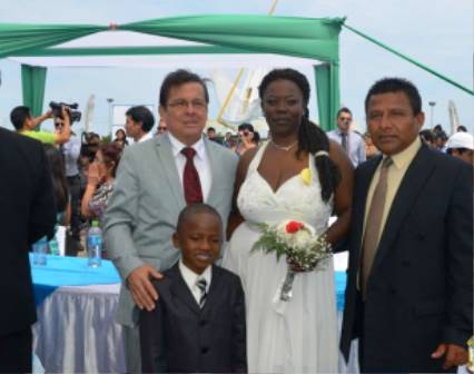 La ceremonia tuvo como escenario la Plaza Mayor de Nuevo Chimbote hasta donde se hicieron presentes familiares y amigos de los contrayentes.