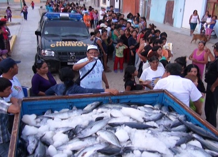 Chimbote en Línea (Nuevo Chimbote).- Alrededor de dos toneladas de pescado “bonito” fueron distribuidas por el alcalde de la Municipalidad Distrital de Nuevo Chimbote, Francisco Gasco Barreto, entre diversos pueblos de los sectores I y II del distrito sureño.