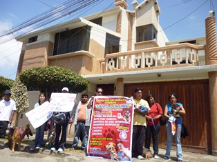 Chimbote en Línea (Nuevo Chimbote).- Enterados de que una familia vietnamita instalada hace poco tiempo en el distrito de Nuevo Chimbote, ha traído consigo, una de sus costumbres, comer carne de perro, la Asociación Unidos por los Animales hizo una enérgica protesta en el frontis de la empresa Telecomunicaciones Viettel Perú S.A.C. para exigir que se respeten a los canes.