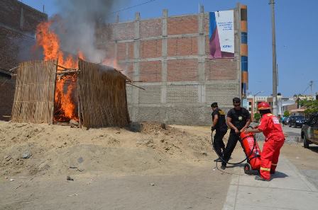 La autoridad edil presentó dos extintores de 50 kilos que irán a bordo de los patrulleros de Seguridad Ciudadana que recorren el cono sur del distrito. Posteriormente, con una simulación de incendio, los agentes del Serenazgo demostraron cuan efectivos pueden ser estos aparatos.