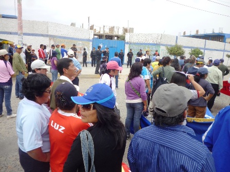 Los docentes sindicalistas se postraron en ambas puertas de ingreso y esperaban la salida de sus colegas para enfrentarlos. A ellos los tildan de “Amarillos” por no plegarse a la lucha por incremento del salario y además manifestarse en contra de la Reforma Magisterial.